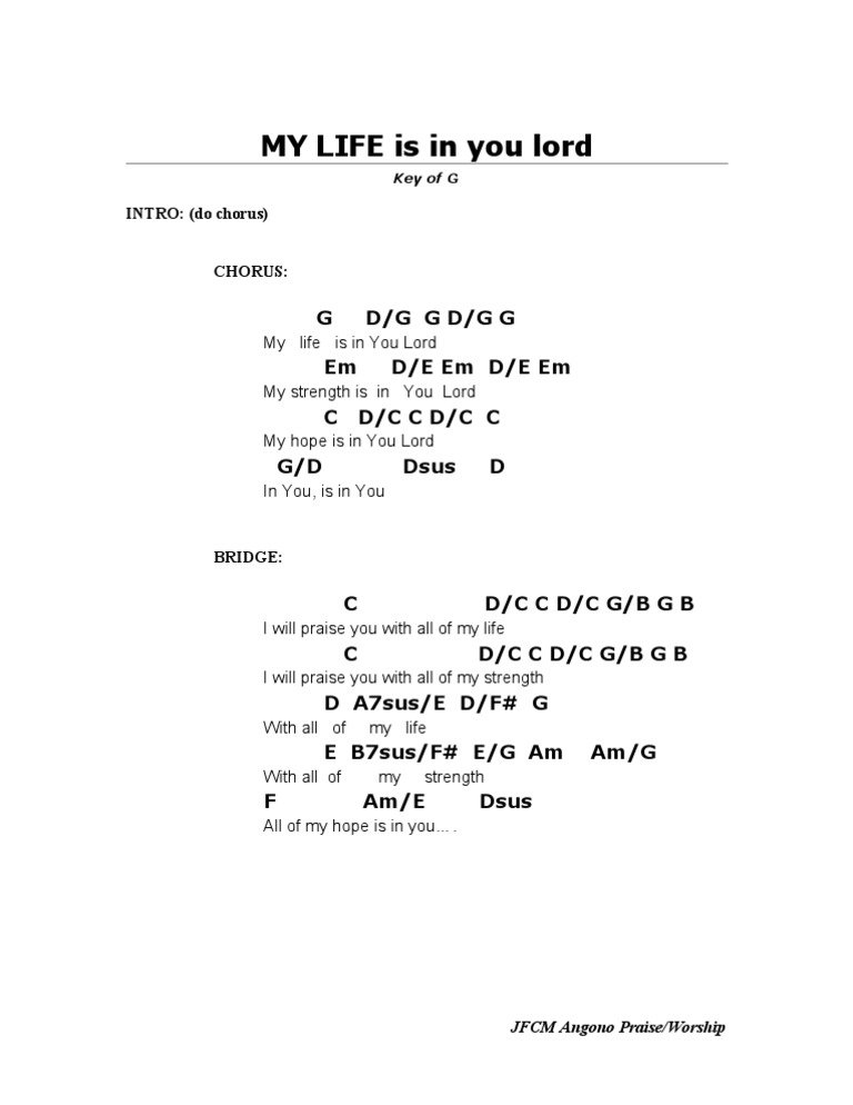 Looking for the chords to “My Life is in You Lord”? Look no further! In this article, we’ll delve into the soul-stirring melody and graceful harmonies that make up this beloved worship song. Whether you’re a seasoned musician or just starting out, understanding the chords is essential for capturing the heartfelt essence of this spiritual anthem. So, let’s dive in and explore the enchanting world of “My Life is in You Lord chords” and how they can elevate your worship experience.
